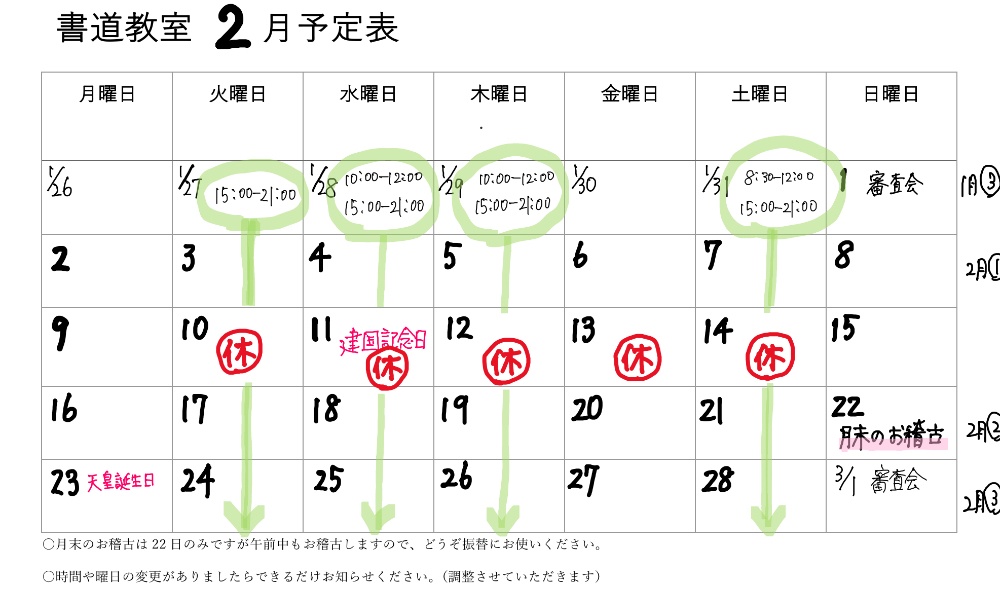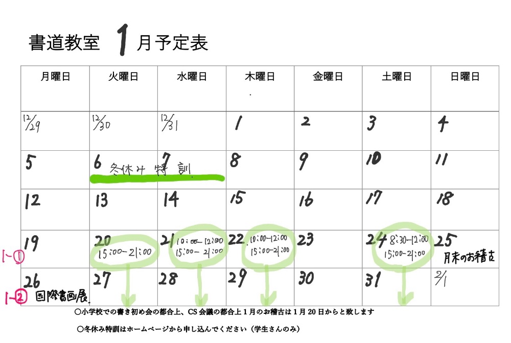 つきましては自宅教室での書き初めお稽古とします。