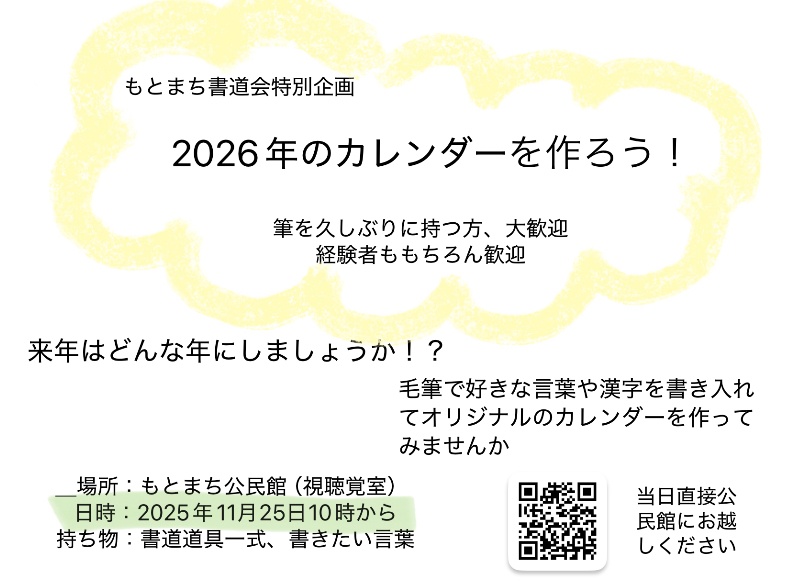 上部に筆文字を書き入れてオリジナルのカレンダーを作りましょう。